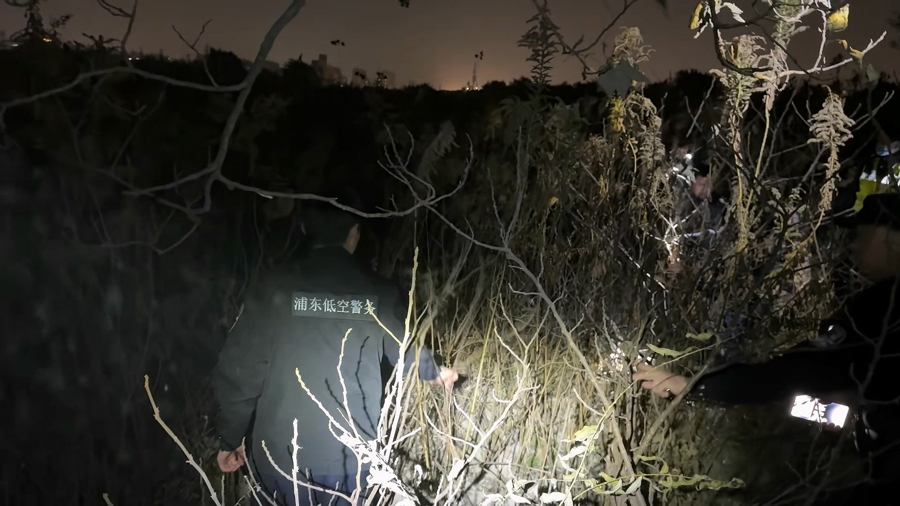 面对广阔复杂的荒地和逐渐恶化的天气,常规地面搜索效率显得有些捉襟见肘。在初步联系与搜索收效有限后,浦东警方未局限于传统搜寻模式,而是迅速启动研判机制,并立即调动分局专业力量——低空警务专班,“空地协同”开展救援。