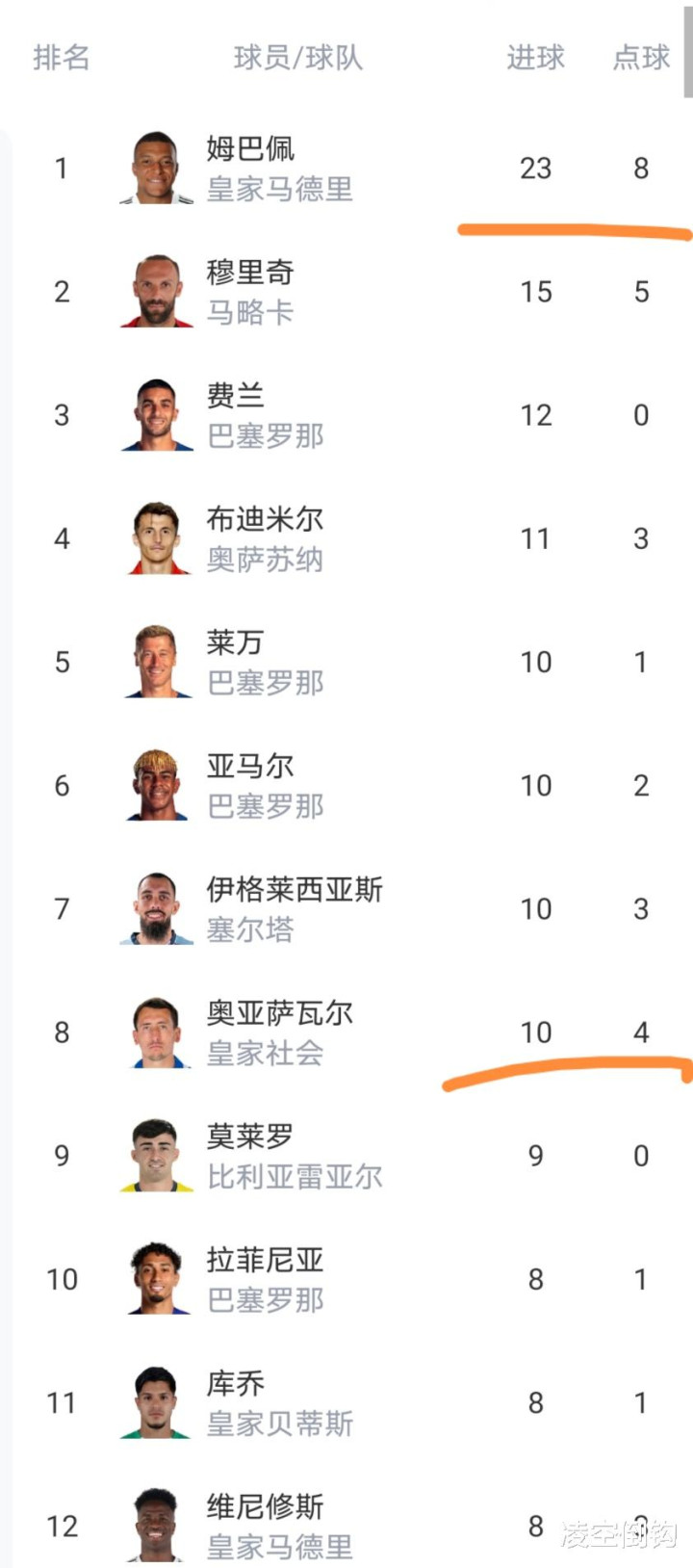 射手榜上已经有8名球员进球上双,维尼修斯也是逼近射手榜前十了。