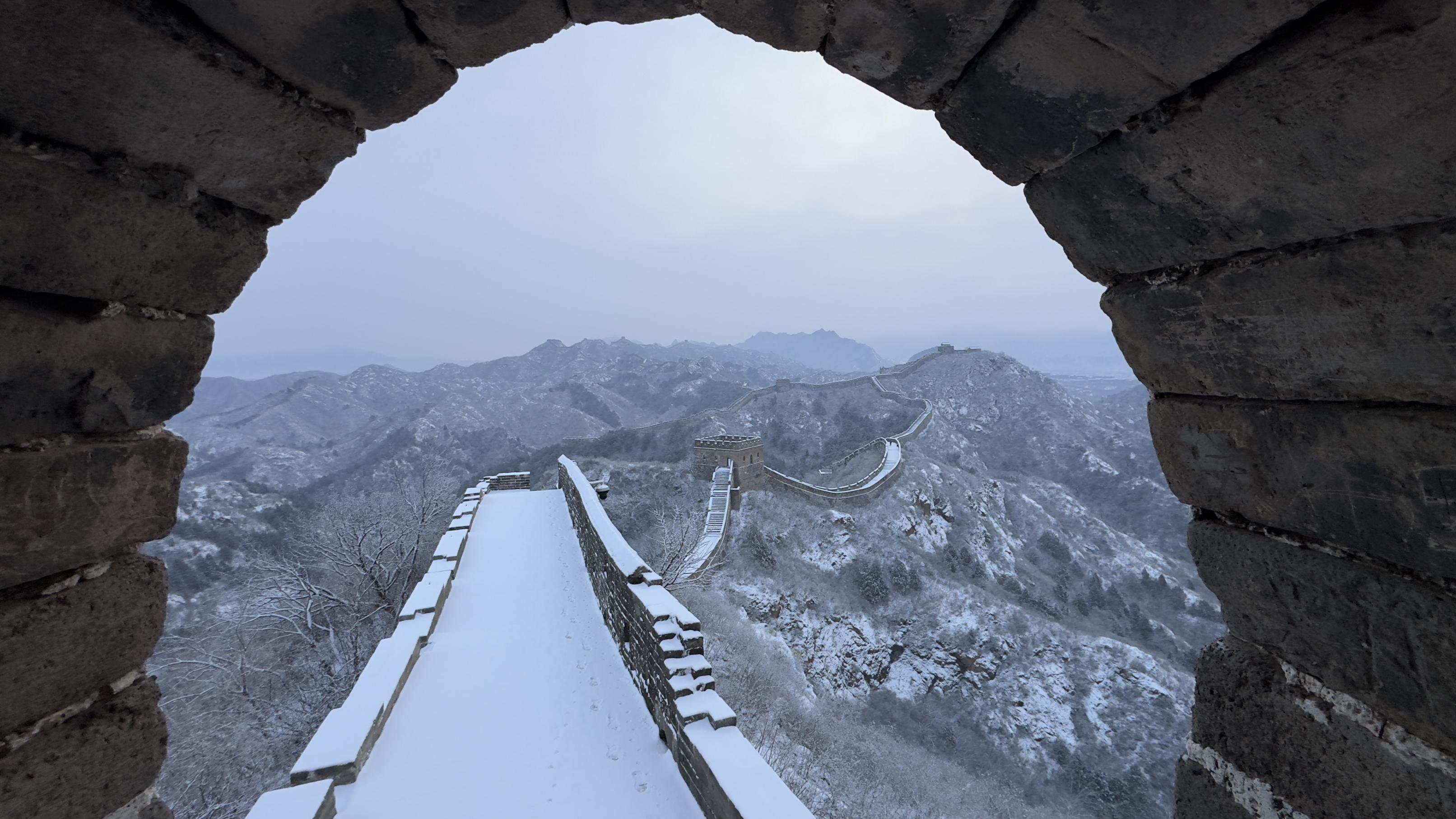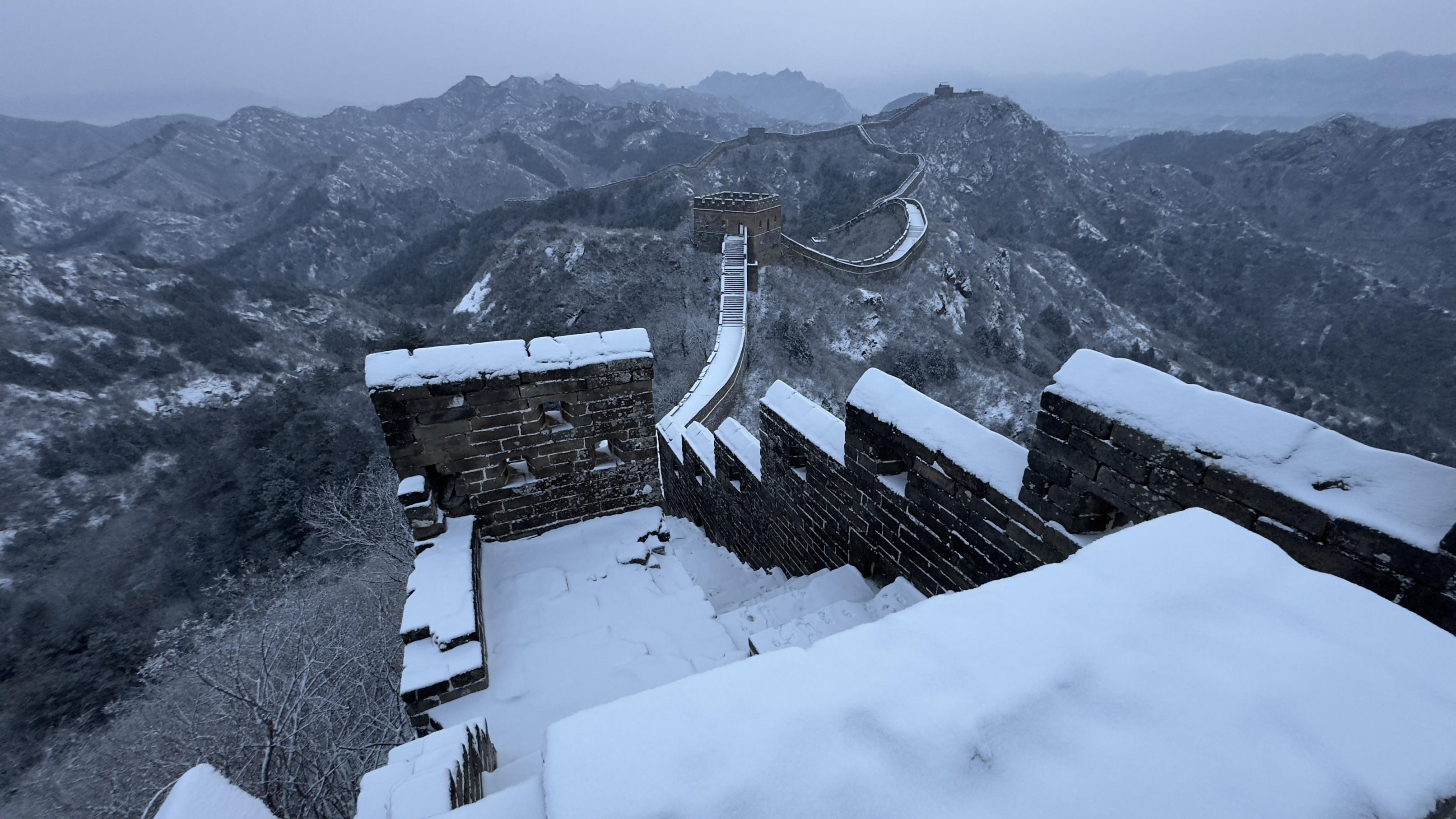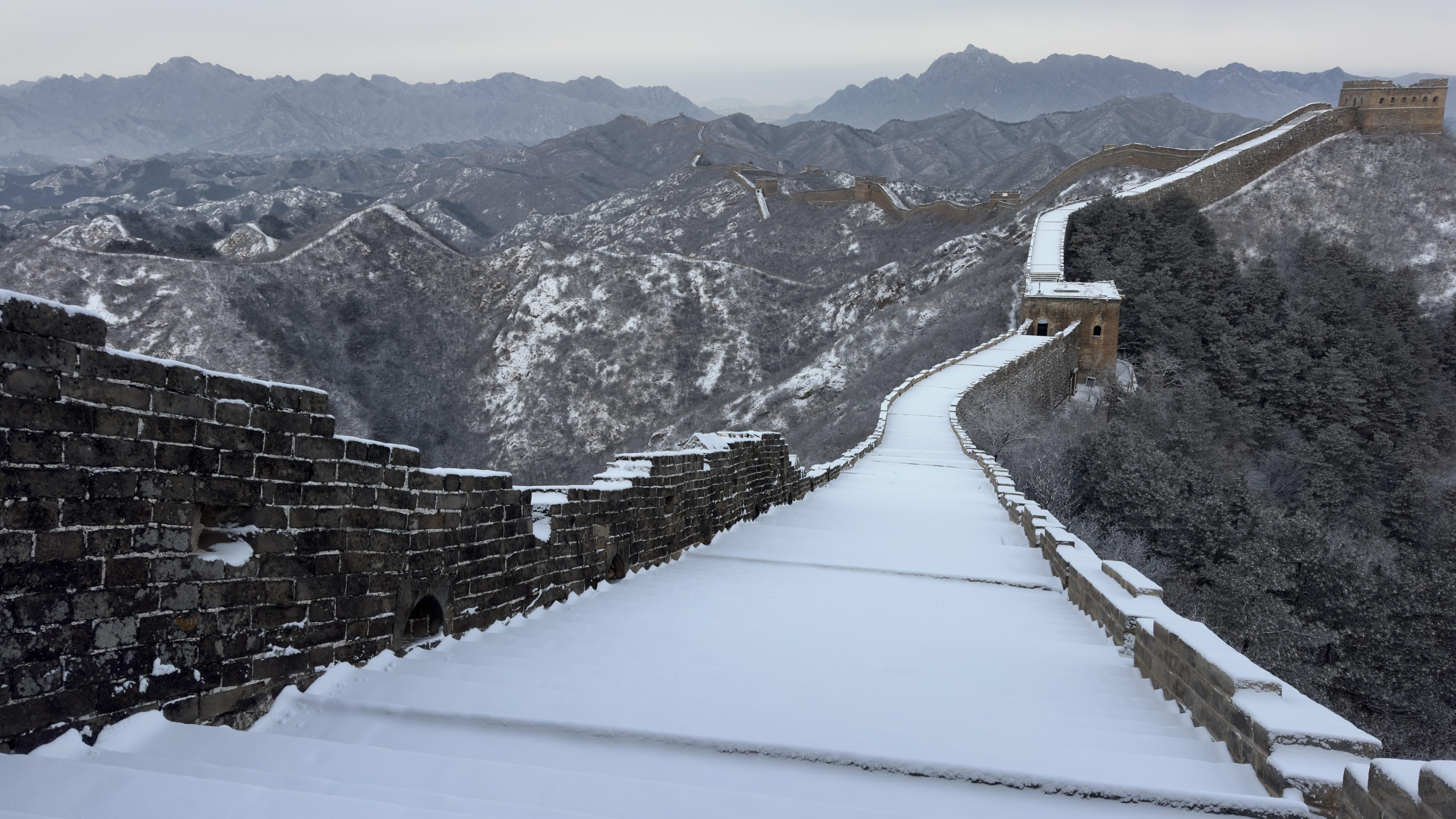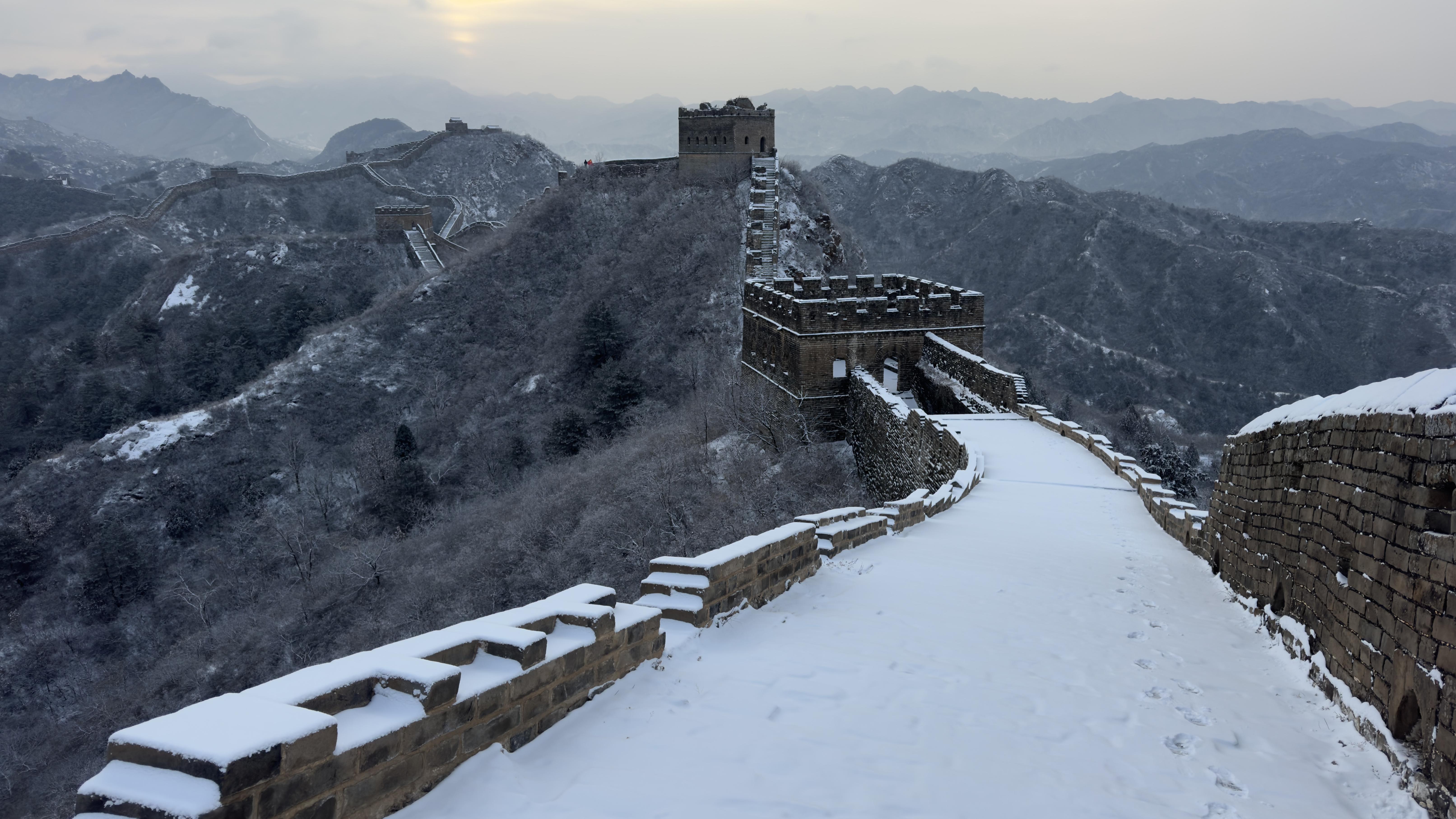 12月13日,初雪初霁股巢配资,河北省承德市滦平县金山岭长城,银装素裹,一派壮美北国风光景象。