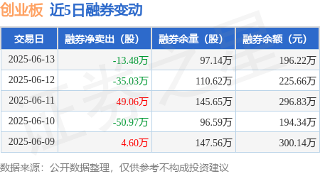 本站消息股巢网,6月13日,创业板(159915)融资买入1.04亿元,融资偿还1.22亿元,融资净卖出1830.22万元,融资余额16.83亿元。