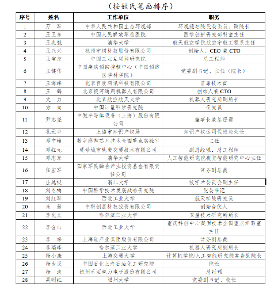 值得关注的是,一批知名科技公司的创始人、企业家入选咨询委委员候选人。具体包括,宇树科技创始人、CEO兼CTO王兴兴,强脑科技创始人兼CEO韩璧丞,智元机器人联合创始人兼CTO彭志辉, 银河通用机器人创始人兼CTO王鹤等。